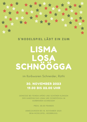 Geniesse bei feinem Apéro und schönen Klängen der Handpan das Lisma und Schnöögga im Korbwaren Schneider in Rüthi SG!