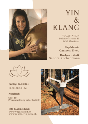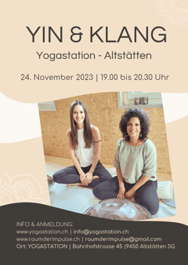 Nicht verpassen. Diesen Herbst beriesle ich mit meinen Handpan-Klängen zum 4. Mal einen Yin Yoga-Event in der Yogastation in Altstätten.