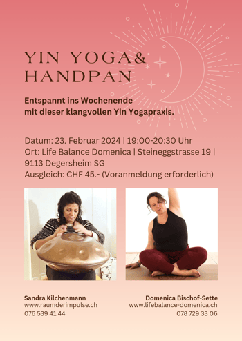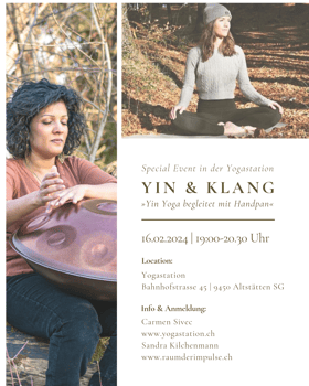 Nicht verpassen. Im Februar beriesle ich zum dritten Mal mit meinen Handpan-Klängen diesen Yin Yoga-Event in Altstätten.