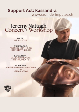 Valerio Menon, gilt als einer der besten Handpan-Hersteller der Welt und organisiert regelmässig Events in der traumhaften Region in Thun. Im Dezember 2024 lädt er diesmal Handpan-Superstar Jeremy Nattagh aus Frankreich ein, welcher ein Workshop und ein Konzert im Atelier von Valerio anbietet.