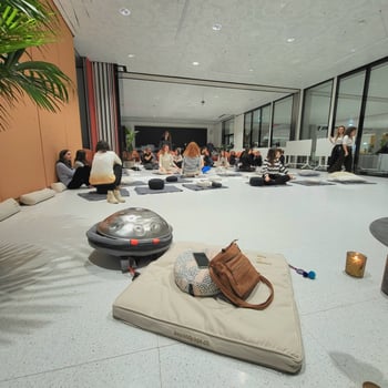 Schliesse im Shavasana (der Entspannungsphase) zu einem 10-minütigen Handpan-Spiel die Runde ab.