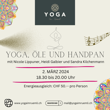 Wow, ich freue mich auf Herisau, wo ich mit meinen Handpan-Tönen eine Yin Yogastunde, angeleitet von Christine Rüegg-Mettler untermalen darf.